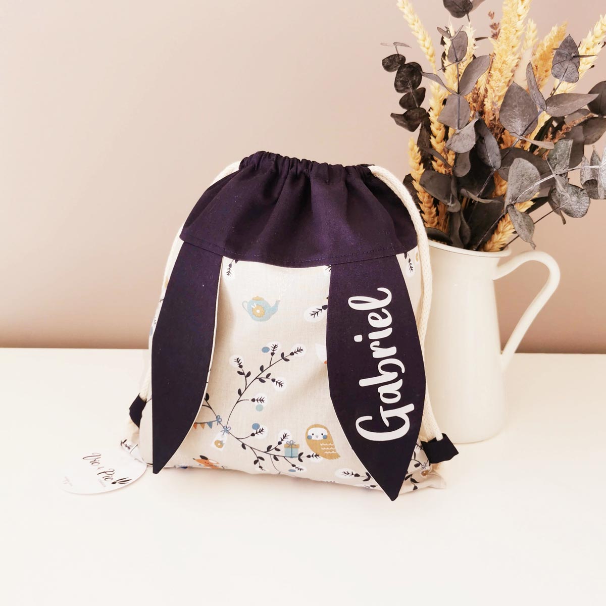 Chaque sac à dos lapin étant fait main, je peux effectivement ajouter un prénom ou un nom de famille dessus au moment de sa conception pour le rendre encore plus unique !