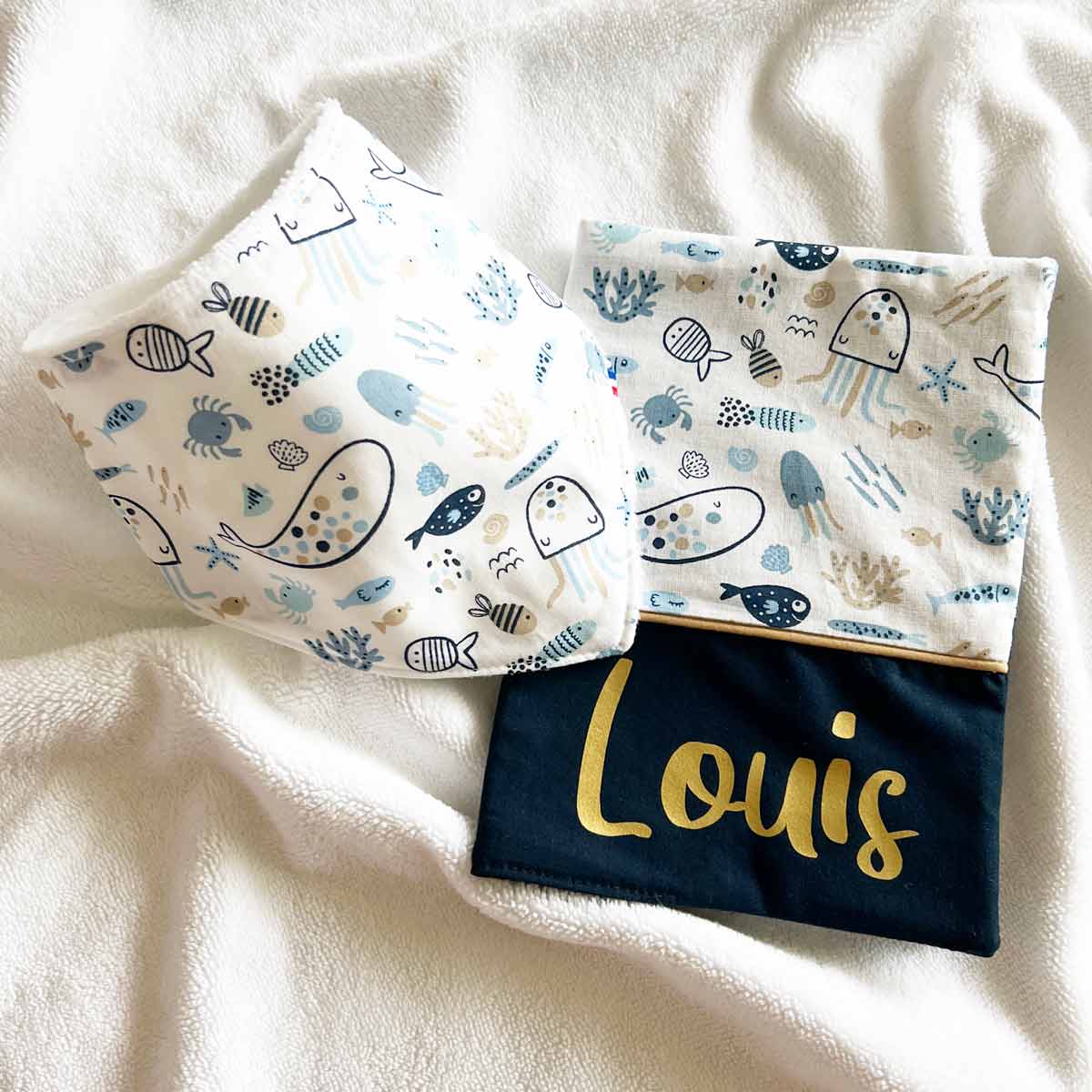 Vous cherchez un cadeau de naissance efficace, personnalisable et adorable ? Vous venez de le trouver ! Ce duo composé d'un bavoir bandana et d'un protège-carnet regroupe 2 essentiels pour prendre soin de bébé.