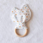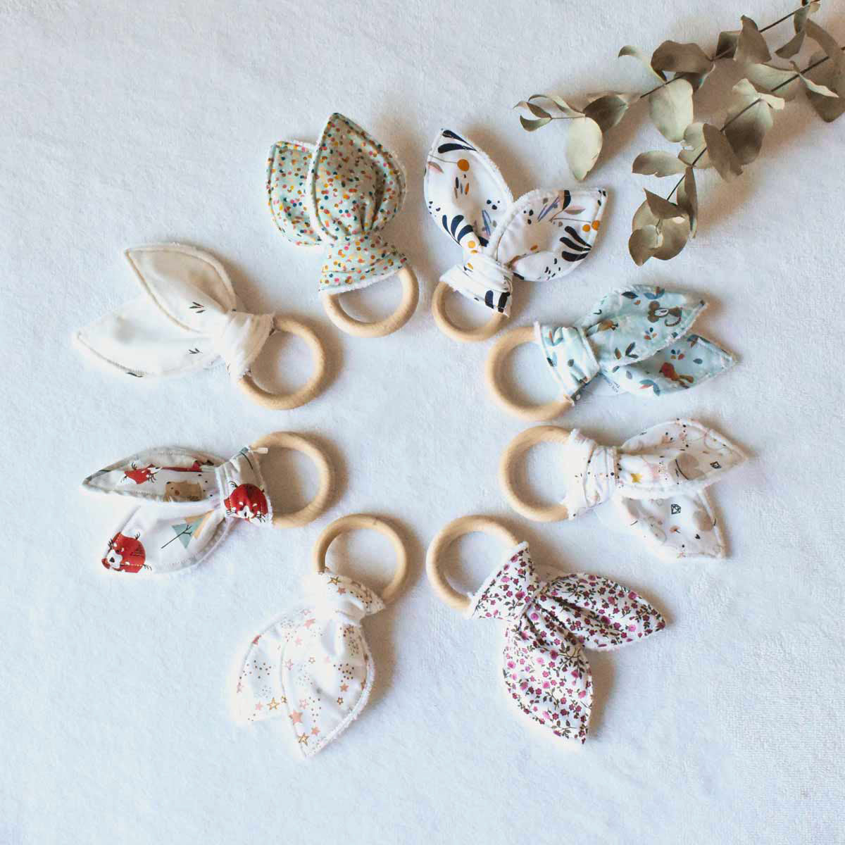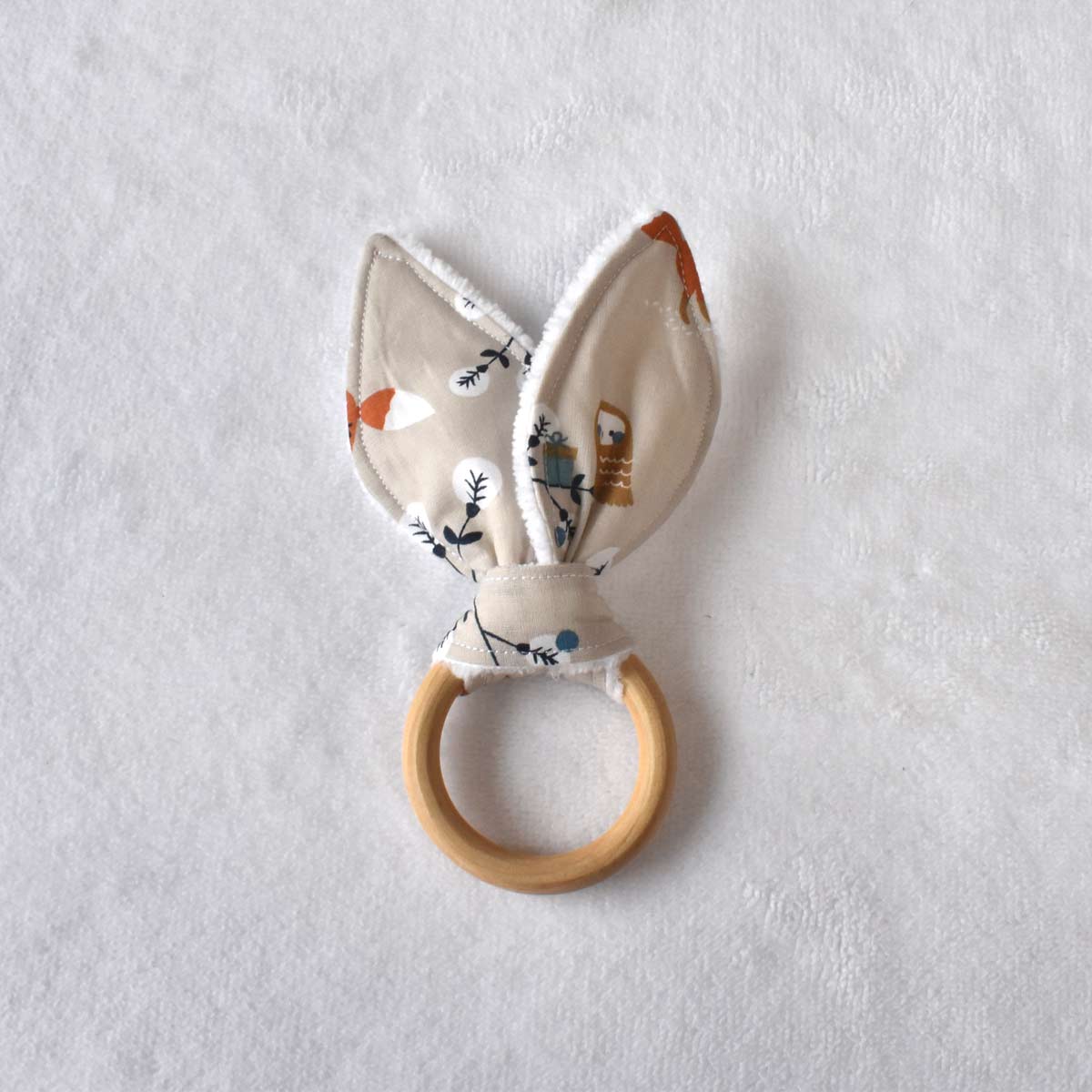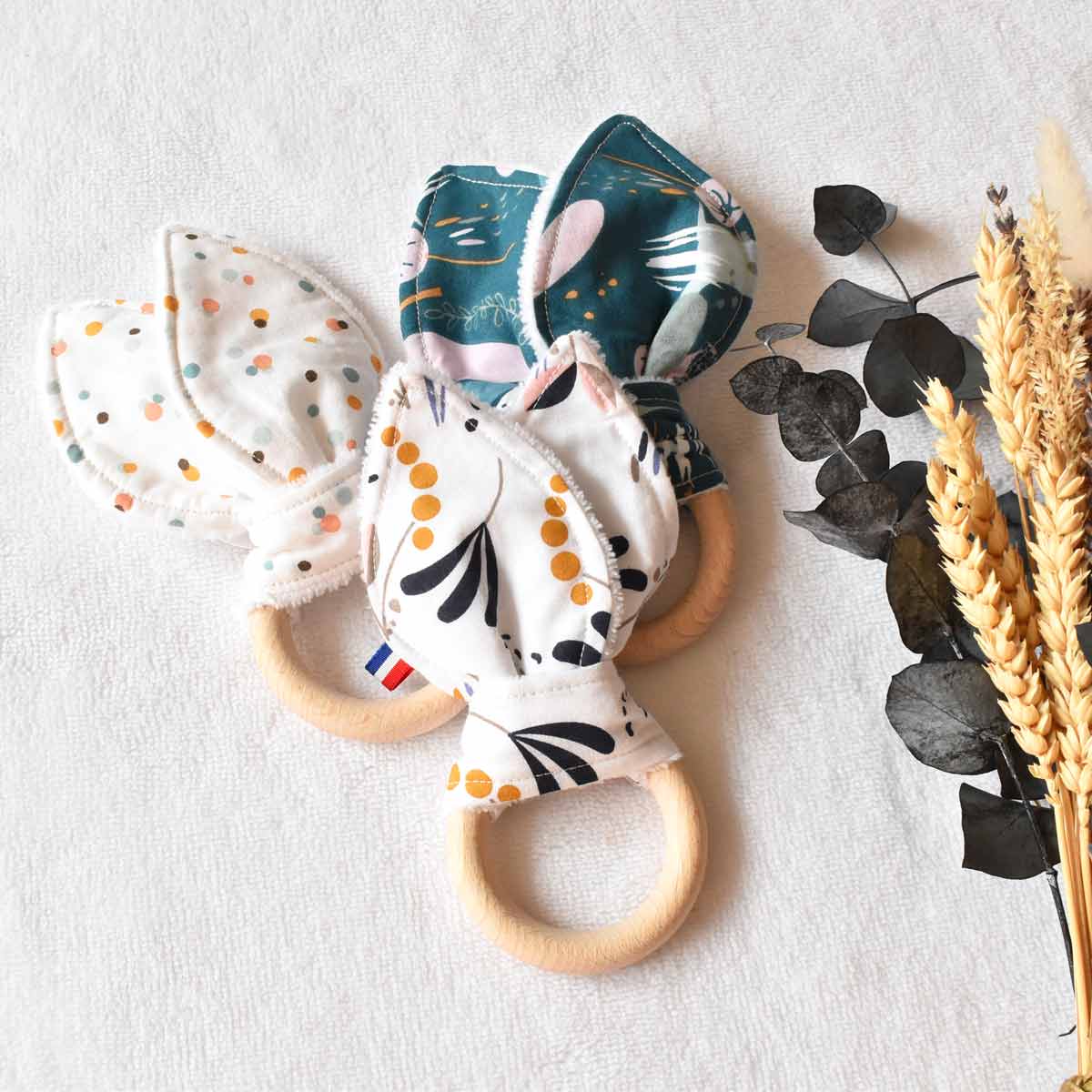 Un hochet aux oreilles de lapin Rêve qui, grâce à son anneau de dentition en bois naturel, soulagera bébé lors de ses poussées dentaires.
